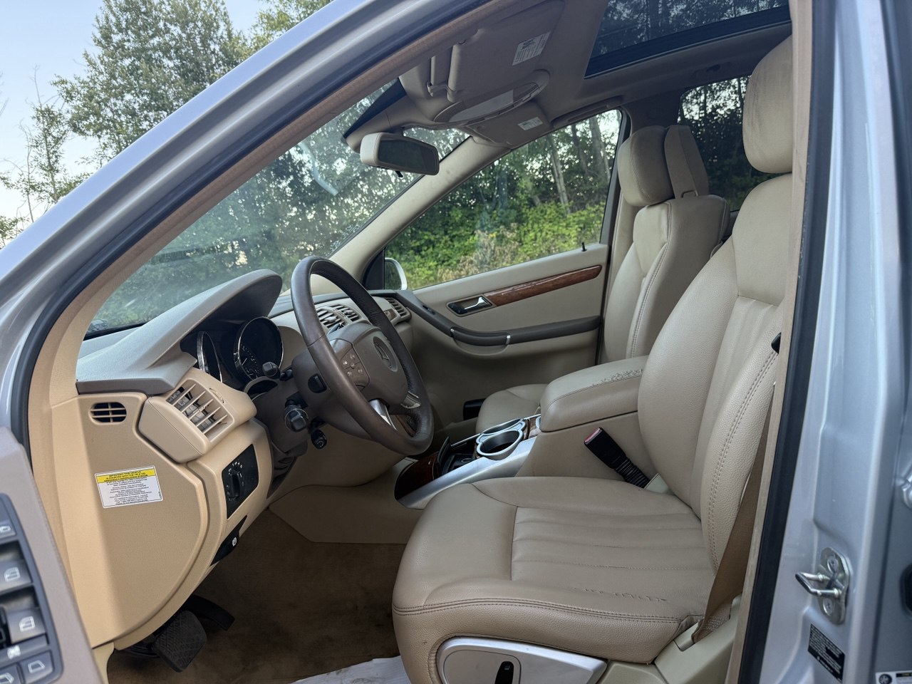 Inside, the R350 offers a beautiful beige leather interior, dual sunroofs, premium wood trim, comfortable captain-style seats, and a clean, open layout. Mercedes designed the R-Class for families who want luxury AND practicality — and it delivers exactly that.